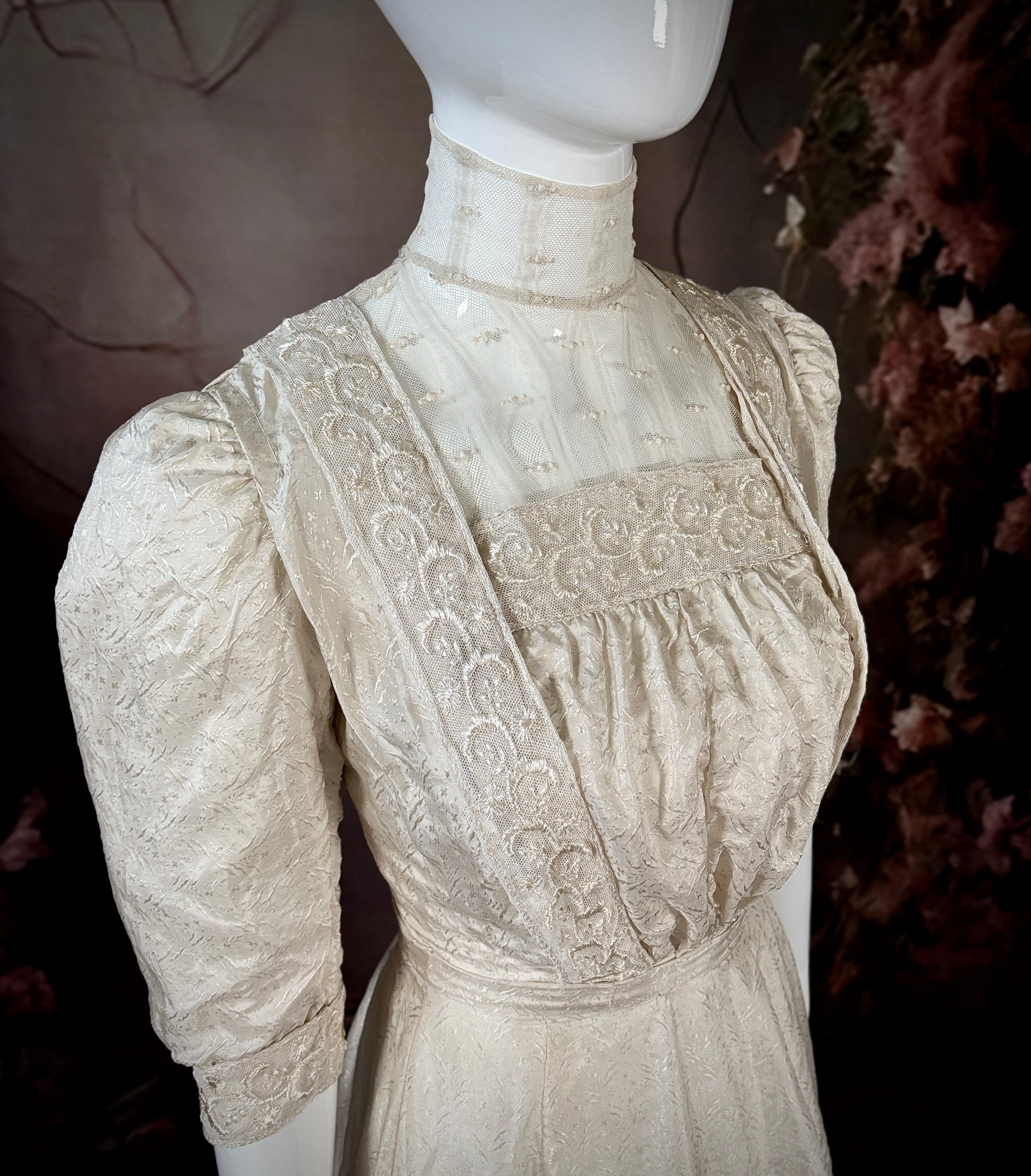 1890s Silk Jacquard Wedding Dress W/Gigot Sleeves (NOS)